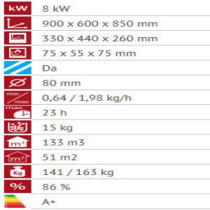 - Komora za sagorevanje izrađena od čeličnog lima a ložište od liva čime se omogućava sigurno i dugotrajno funkcionisanje proizvoda.