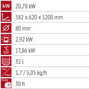 -Svi ugrađeni elementi (elektromotori za doziranje peleta, ubacivanje svežeg vazduha za sagorevanje, elektronike sa displejom, upaljači, itd.) su proizvodi renomiranih evropskih proizvođača